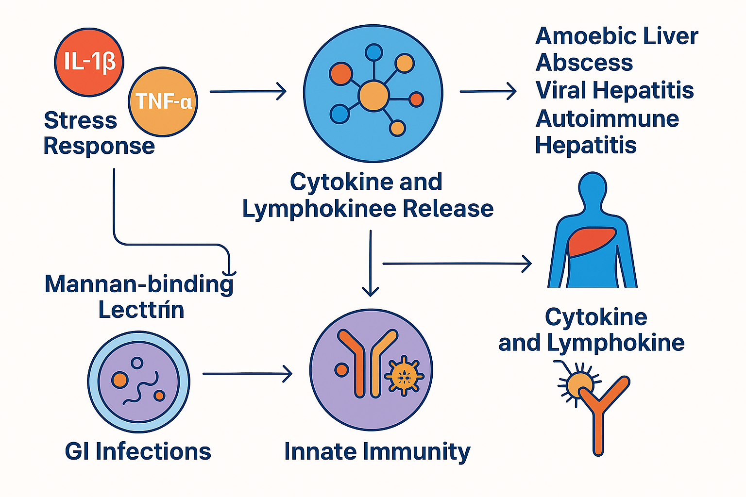 CLRD’s cytokine research maps IL-1β, TNF-α and lymphokine patterns in liver abscess, viral and autoimmune hepatitis. Studies link cytokine dysregulation to sepsis, ulcerative colitis, and ankylosing spondylitis, while MBL variant analysis advances understanding of innate immunity in GI infections.