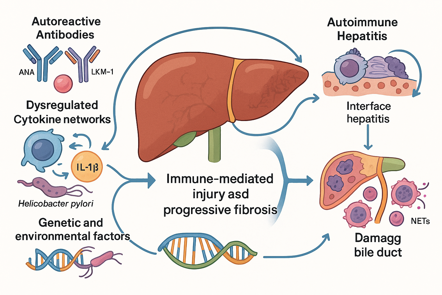 Autoimmune liver diseases constitute a distinct group of chronic hepatic disorders in which the immune system erroneously targets the liver’s own cells and structures. Unlike infectious or metabolic liver conditions, these diseases are driven by complex immunological mechanisms that involve autoreactive antibodies, dysregulated cytokine networks, and genetic predispositions interacting with environmental triggers. The two most clinically significant entities in this category are Autoimmune Hepatitis (AIH) and Primary Biliary Cholangitis (PBC), each with unique pathological features yet sharing common themes of immune-mediated injury and progressive fibrosis.