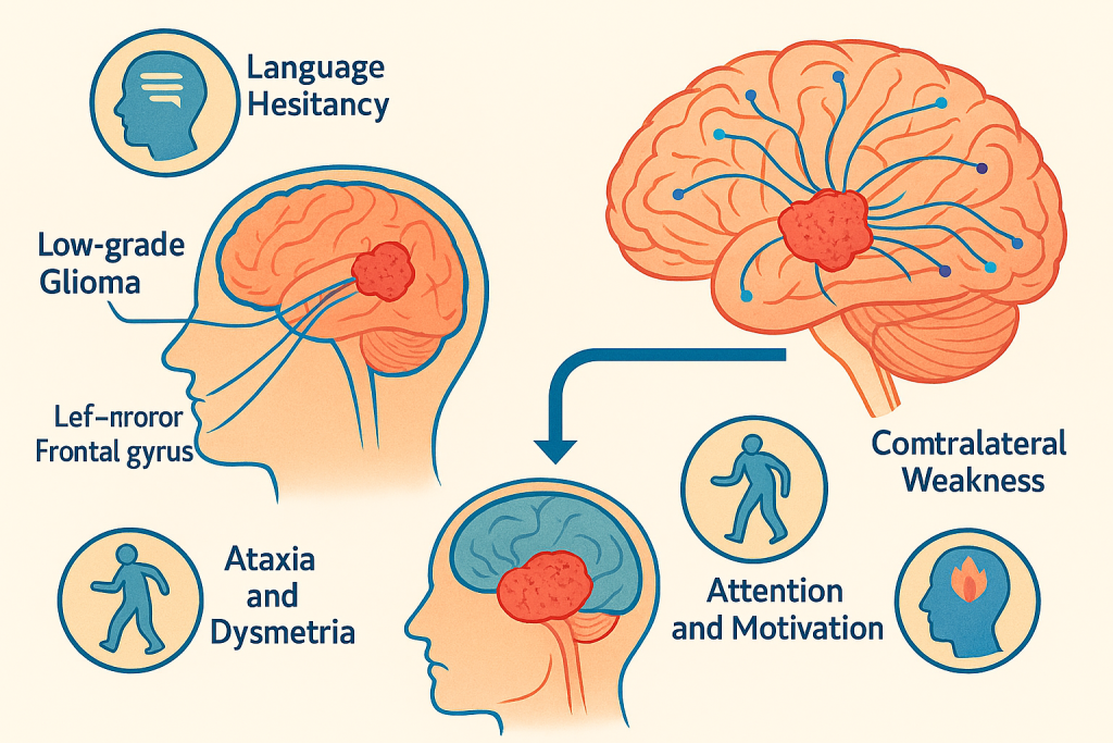 A brain tumor’s threat is not defined solely by histology or grade. Location dictates the symptom constellation and the therapeutic window. A low‑grade glioma within the left inferior frontal gyrus may precipitate subtle language hesitancy yet sit astride critical speech pathways, while a high‑grade glioblastoma in non‑eloquent frontal white matter may be resectable with comparatively lower functional risk. Motor strip lesions can cause contralateral weakness, cerebellar tumors provoke ataxia and dysmetria, and deep thalamic or basal ganglia involvement may disrupt attention and motivation. Treatment specialization thus begins with functional cartography: mapping where tumor biology intersects with the patient’s lived neurology. The clinical objective is maximal safe resection, which reduces tumor burden, improves the effectiveness of adjuvant therapy, and, in many tumor types, correlates with overall and progression‑free survival, all without sacrificing crucial neurological functions. When the lesion abuts or interdigitates with eloquent networks, the strategy shifts from purely anatomical removal to connectome‑guided preservation.